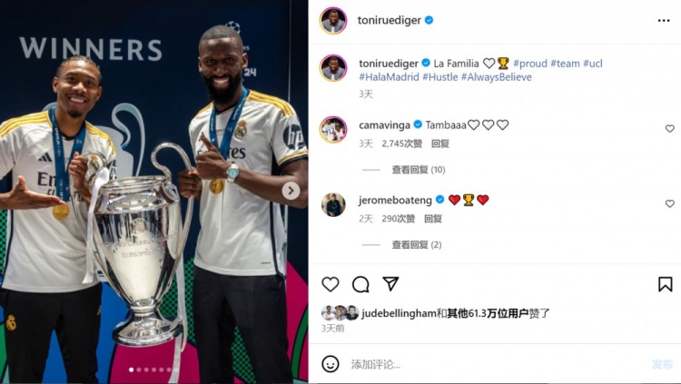 本赛季欧冠联赛,吕迪格跟随皇马夺得冠军,他也在个人社媒晒照庆祝夺冠,有眼尖者发现他的手腕上戴着一块价值不菲的手表。