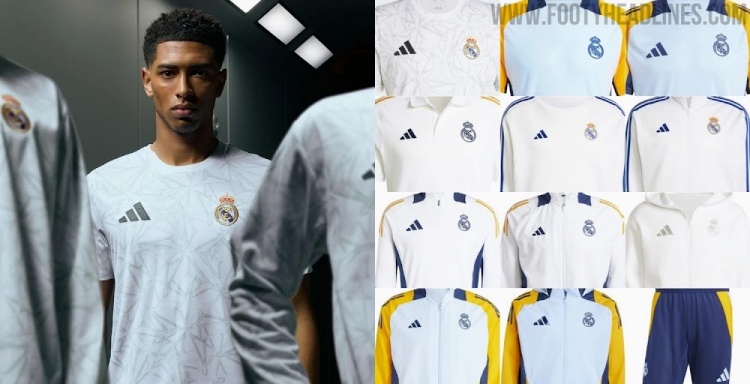 皇马发布新赛季训练套装:涵盖球衣、球裤和外套,配色白黄蓝