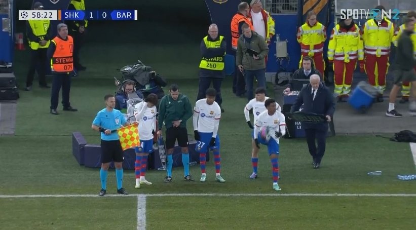 11月8日讯 欧冠小组赛H组第4轮,巴塞罗那客场挑战顿涅茨克矿工。比赛第59分钟,巴萨仍0射正,哈维一次性换上菲利克斯、巴尔德、亚马尔和佩德里4人,换下费兰-托雷