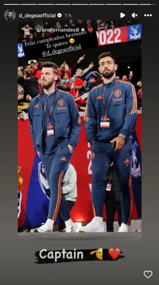 11月8日讯 11月7日,前曼联门将德赫亚迎来了33岁生日,前队友布鲁诺-费尔南德斯在社交媒体上为德赫亚送上了生日祝福。B费分享了一张两人身穿曼联训练服步入球场的照片,配文写道:“兄弟生日快乐,我爱你。”