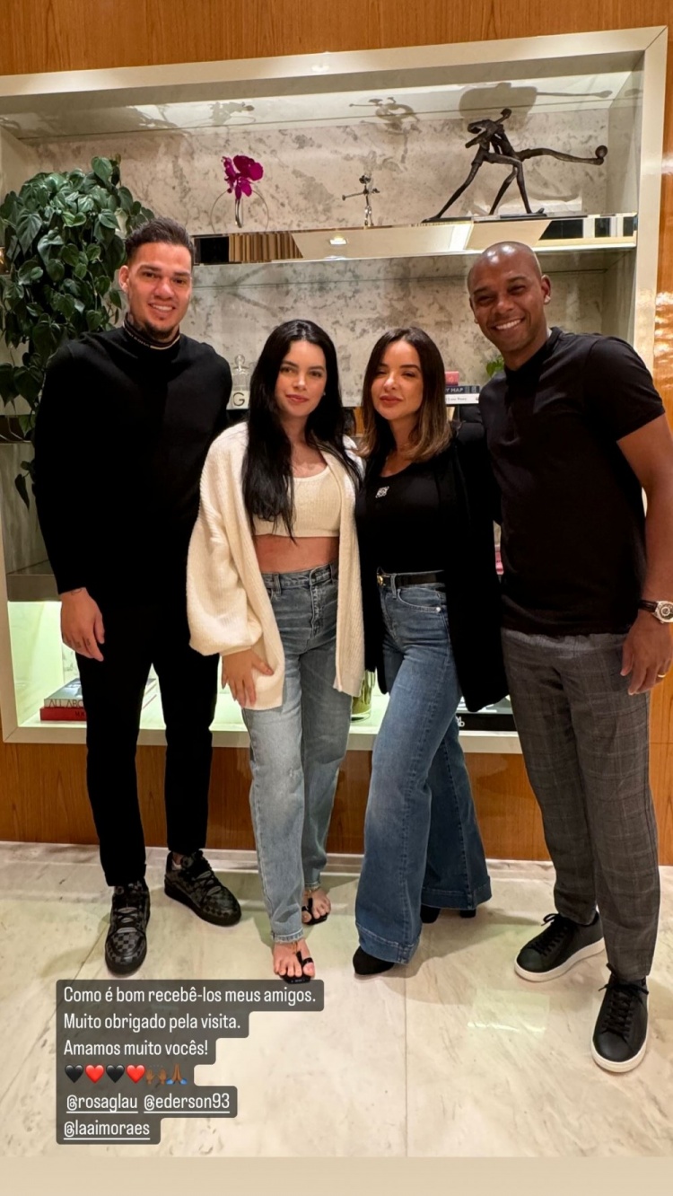 费尔南迪尼奥与曼城老队友埃德森在巴西碰面,费尔南迪尼奥在社交媒体上晒出合照,并写道:“我的朋友,能够欢迎你们真是太好了。感谢你们的到来,非常爱你们!”