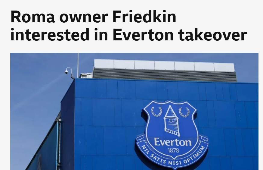 06月09日讯 BBC报道,罗马俱乐部的老板弗里德金对收购英超俱乐部埃弗顿感兴趣。