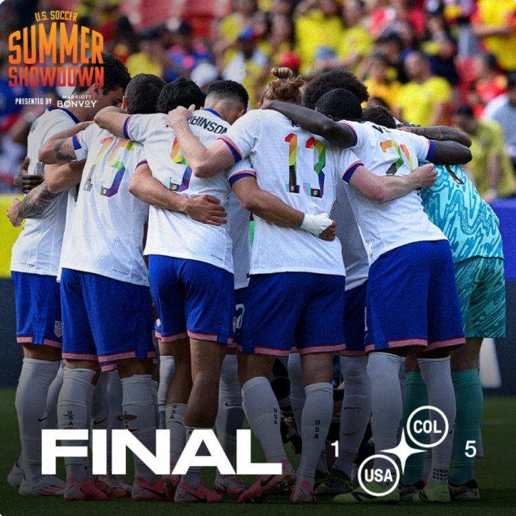6月9日讯 在北京时间今天早晨进行的友谊赛中,美国1-5不敌哥伦比亚。此役美国队史首次排出全五大联赛首发阵容,但遭遇惨败。