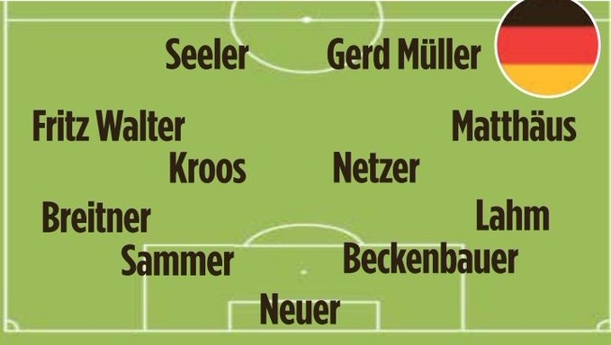 6月9日讯 德媒《图片报》评选了德国历史最佳阵容,贝肯鲍尔、盖德-穆勒领衔,克罗斯、诺伊尔在列,卡恩、克洛泽落选。门将:诺伊尔后卫:拉姆、贝肯鲍尔、萨默尔、