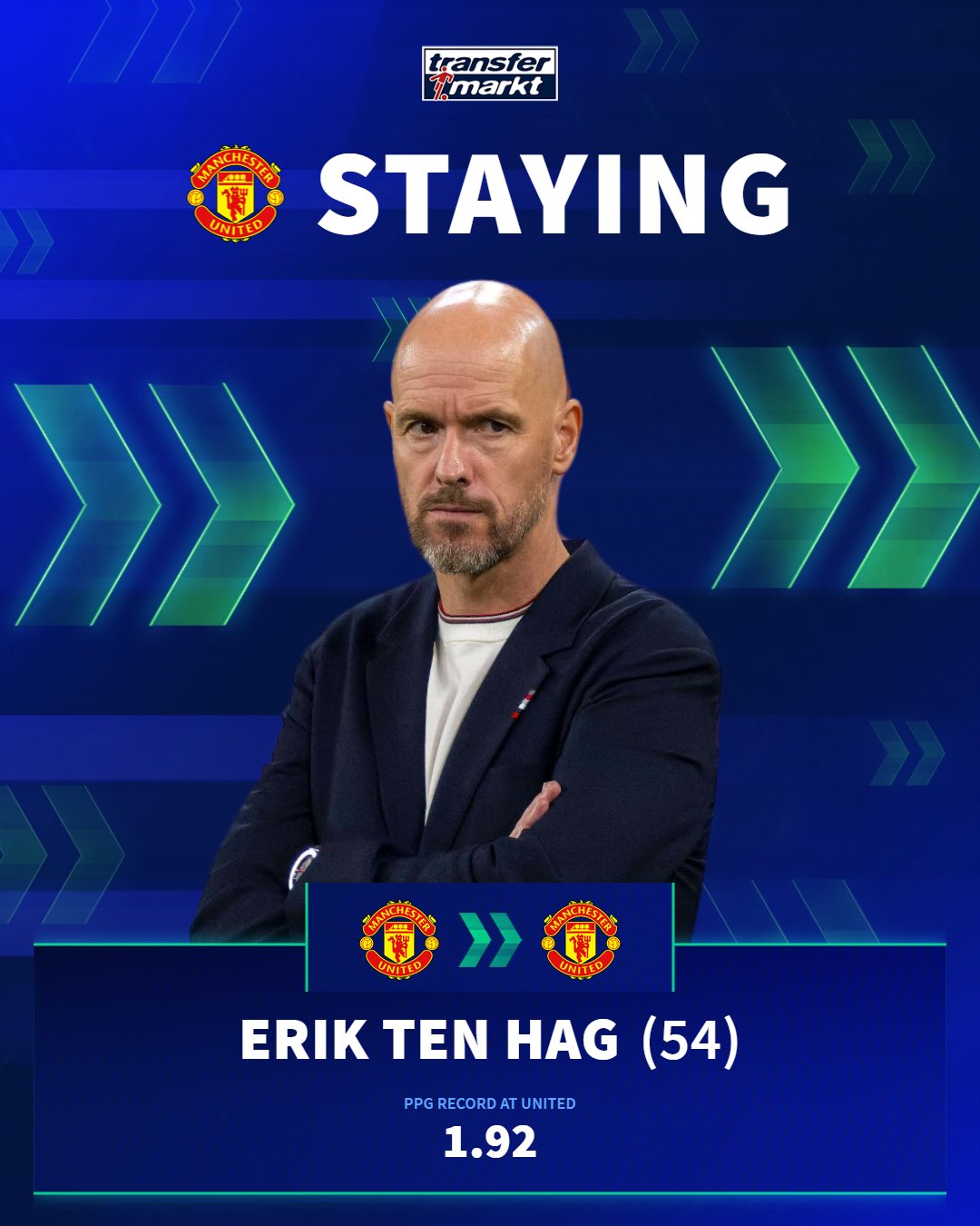 The Athletic名记David Ornstein、罗马诺等多个消息源确认,曼联已决定滕哈赫继续执教。
