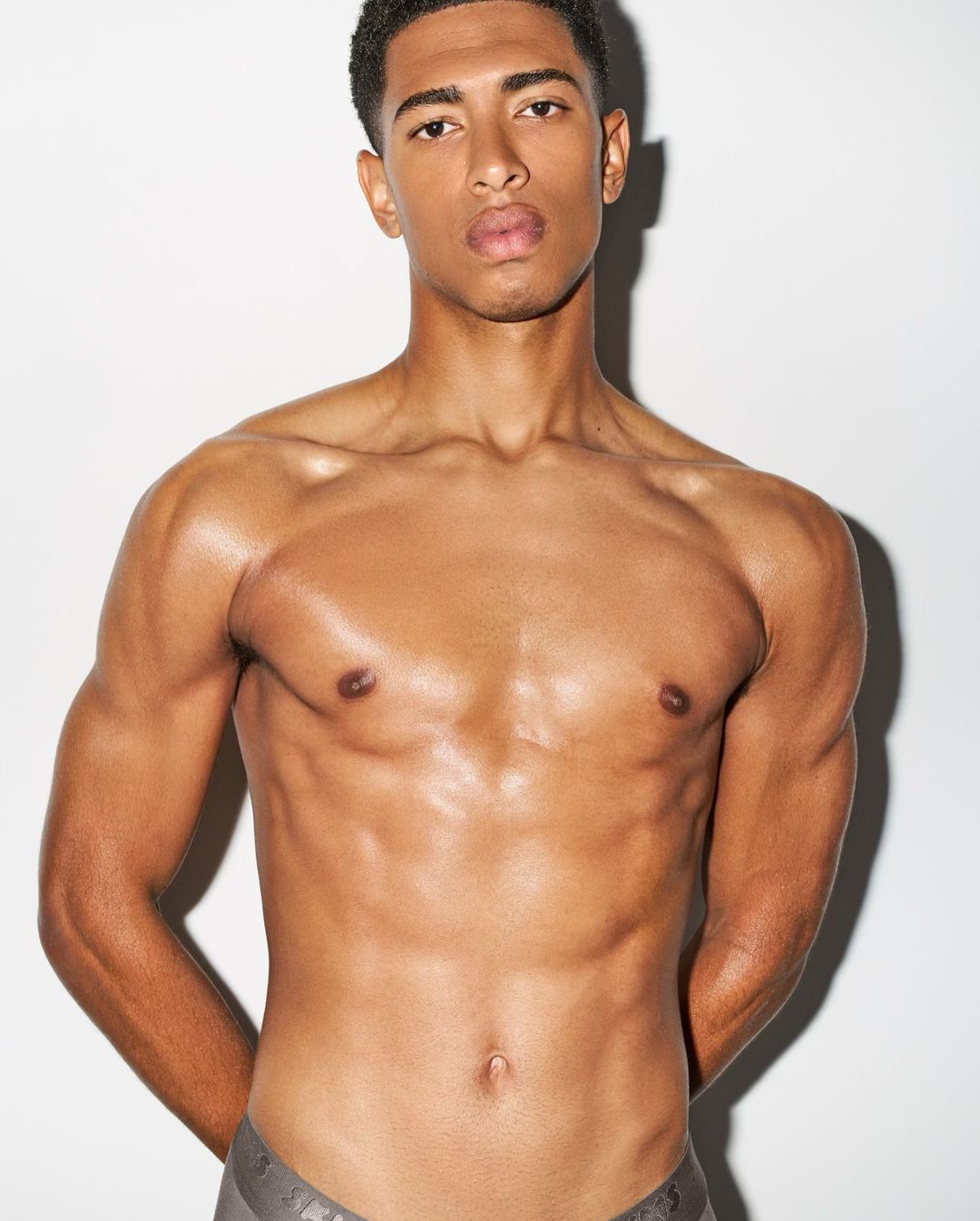 6月12日讯 金-卡戴珊更新社媒动态,晒出贝林厄姆代言服装品牌SKIMS的宣传照片。