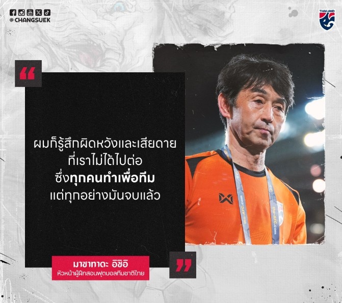 泰国主帅石井正忠在赛后接受了采访:“我对于未能晋级感到失望和遗憾。每个人都为此竭尽全力,但现在一切结束了。”