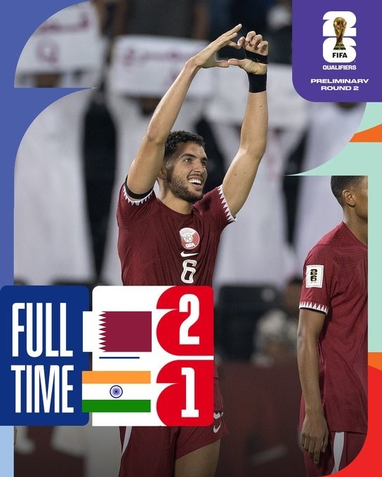 6月12日讯 世预赛末轮卡塔尔主场最后时刻逆转印度,从而帮助科威特晋级下一轮。印度有些出人意料地在第37分钟取得领先,并保持到第73分钟才被艾曼扳平,而卡塔
