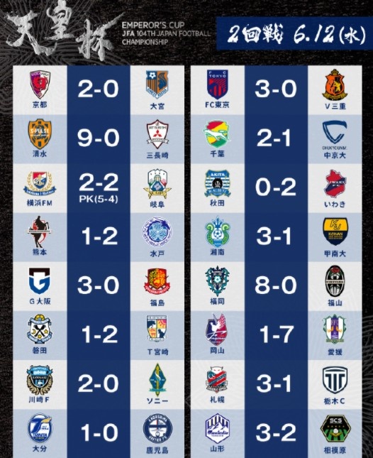 6月13日讯 2024年第104届天皇杯第二轮全部战罢,经过第一轮淘汰赛后,共有64支球队参加第二轮淘汰赛,而本轮比赛出现了不少冷门。