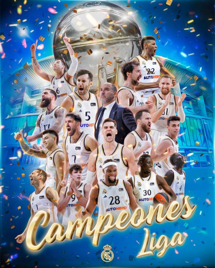 西篮甲决赛,皇马男篮赢得队史第37座联赛冠军。这也是老佛爷弗洛伦蒂诺担任皇马俱乐部主席以来,皇马赢得的第63座冠军奖杯,其中足球35座,篮球28座。