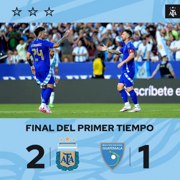 6月15日讯 北京时间6月15日08:00,国际足球友谊赛阿根廷挑战危地马拉的比赛,上半场马丁内斯乌龙球,哈根失误梅西推射空门扳平比分,卡博尼造点,劳塔罗点射反超比分,半场结束,阿根廷2-1危地马拉。