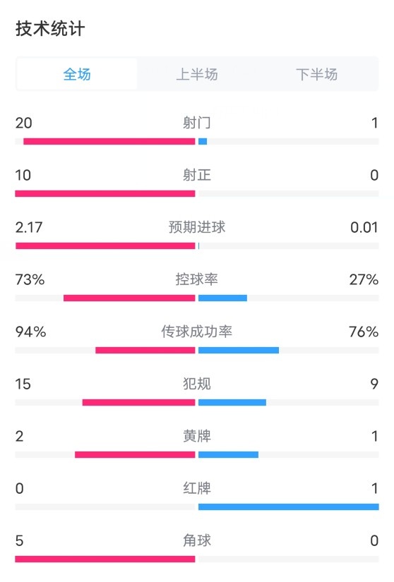 全面压制!德国5-1苏格兰全场数据:射门20-1,射正10-0,角球5-0