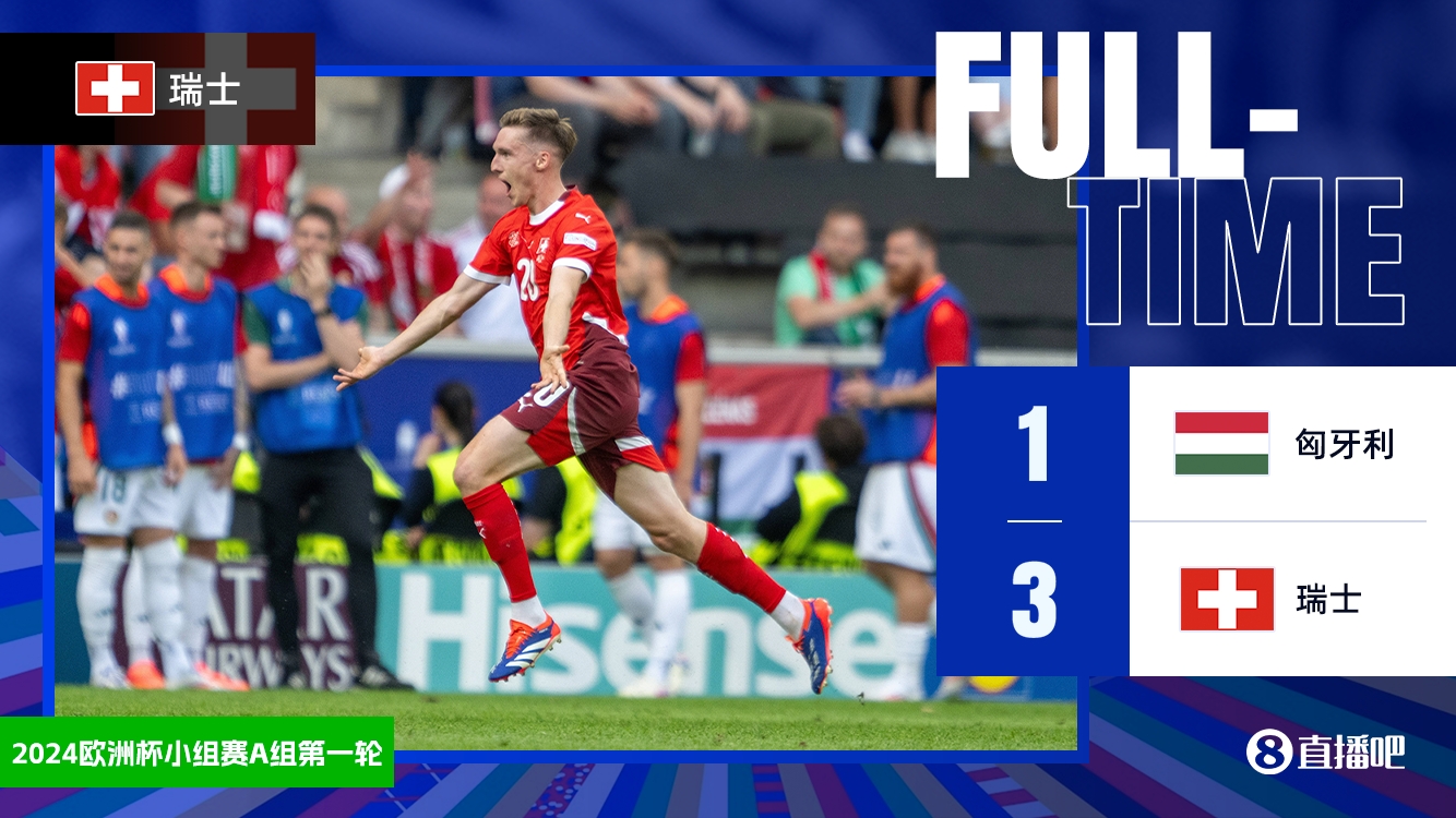 欧洲杯小组赛A组第1轮,瑞士3-1匈牙利,埃比舍尔传射,索博助攻难救主。