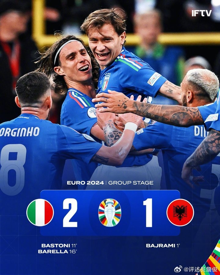 詹俊说:目前来看“死亡小组”成色不足。克罗地亚锋无力+中场老化,阿尔巴尼亚进攻端缺少速度快的球员,反击威胁不大防守也不如预期中稳健。西班牙队在德拉富恩特的执教下,与卡塔尔世界杯时相比,快速简洁直接,进攻效率提升了很多。本战意大利的下半场缺少冒险精神,是进取心不足还是有意隐藏实力?本场最佳的奖项颁给了小基耶萨,但个人觉得巴雷拉在球队的作用非常重要,表现也抢眼。不过,两个中卫巴斯托尼和卡拉菲奥里的一些细节处理让人有点担心。下场对阵西班牙,意大利队要小心!