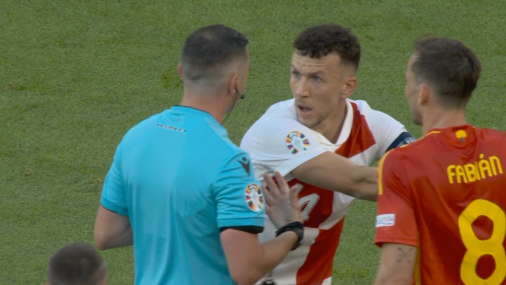 06月16日讯 西班牙vs克罗地亚第79分钟,西蒙送礼,罗德里破坏空门机会吃到黄点,佩里西奇疯狂抗议!