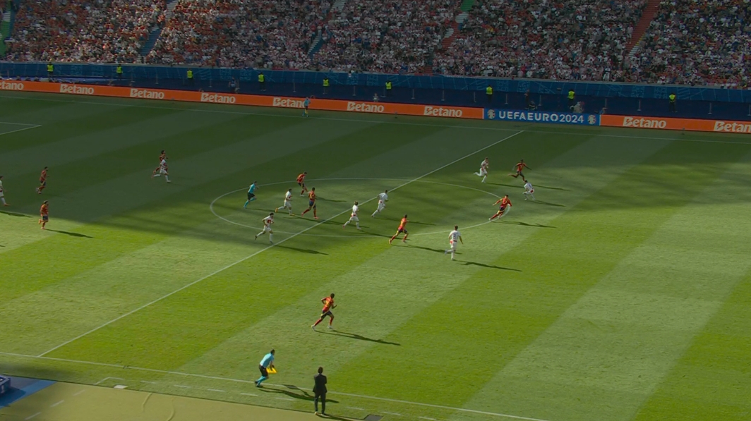 第29分钟,西班牙简单传递撕破克罗地亚防线,罗德里做球给法比安,法比安直塞,莫拉塔单刀冷静推射破门,西班牙1-0领先。