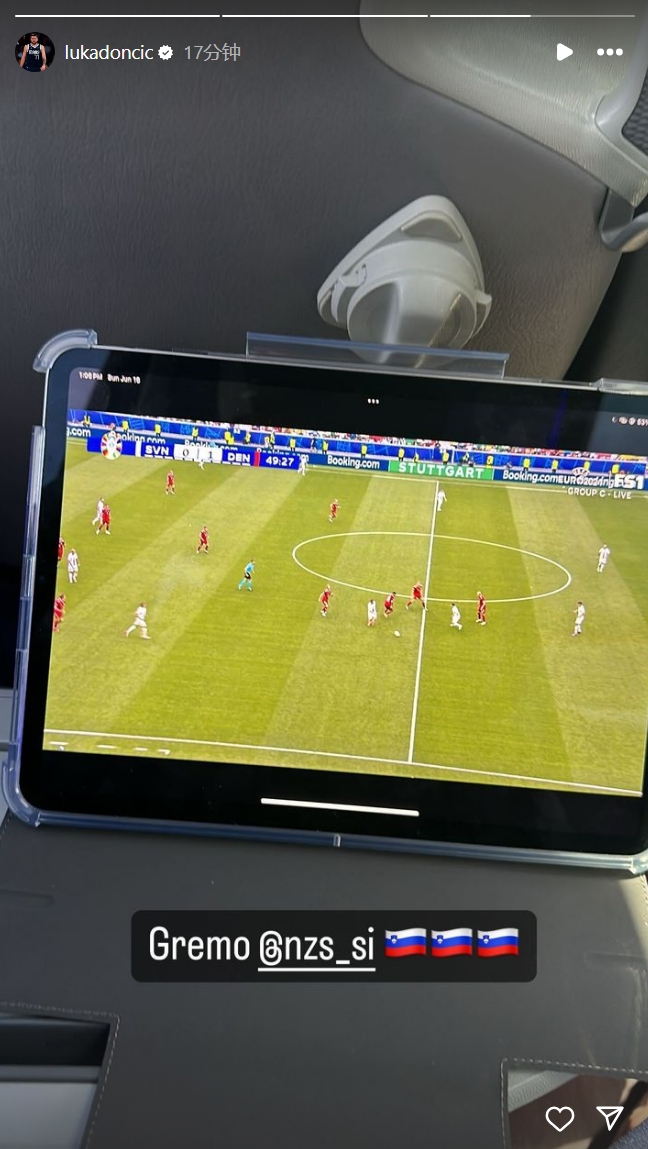 正征战NBA总决赛的斯洛文尼亚篮球巨星卢卡-东契奇也在社媒晒出自己观看直播的照片,为同胞们出战欧洲杯加油助威。