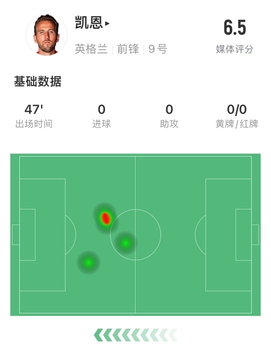 据Sofascore统计,凯恩上半场仅2次触球,而场上其他球员的触球次数都不少于9次。