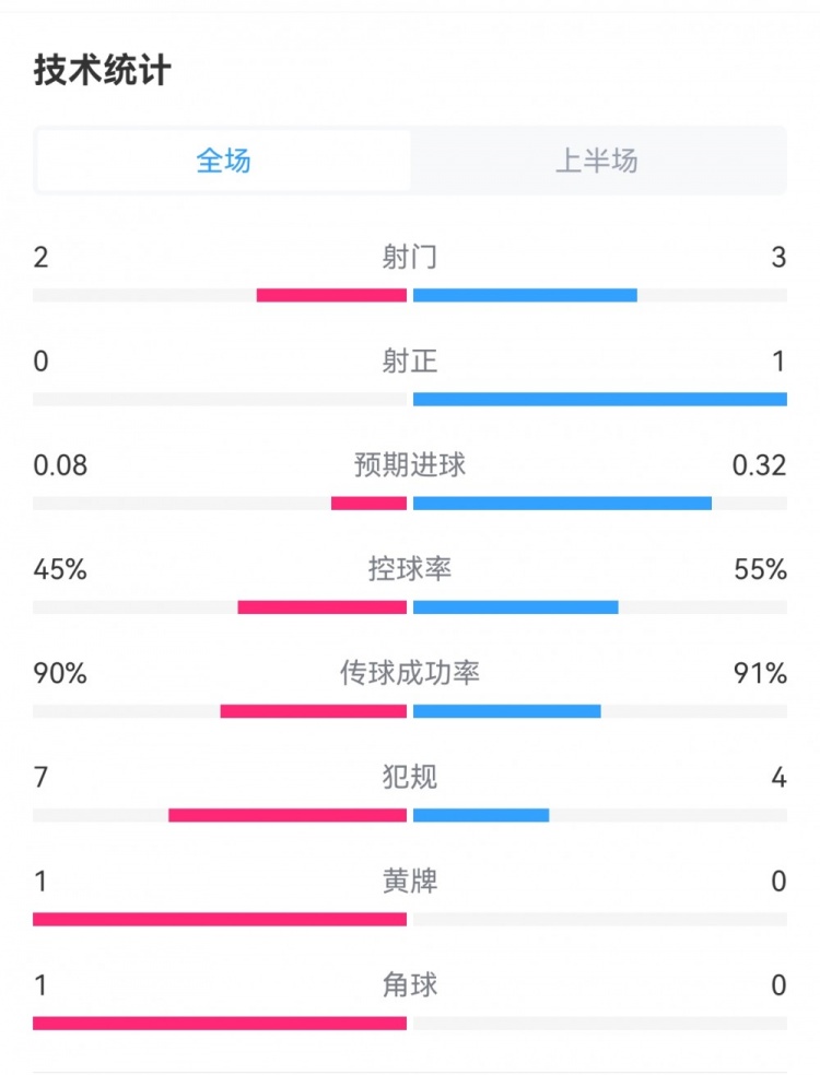 6月17日讯 正在进行的欧洲杯小组赛,贝林厄姆头球破门,英格兰1-0半场领先塞尔维亚。双方半场数据对比如下↓(英格兰在后)射门2-3射正0-1预期进球0.08-0.32控球