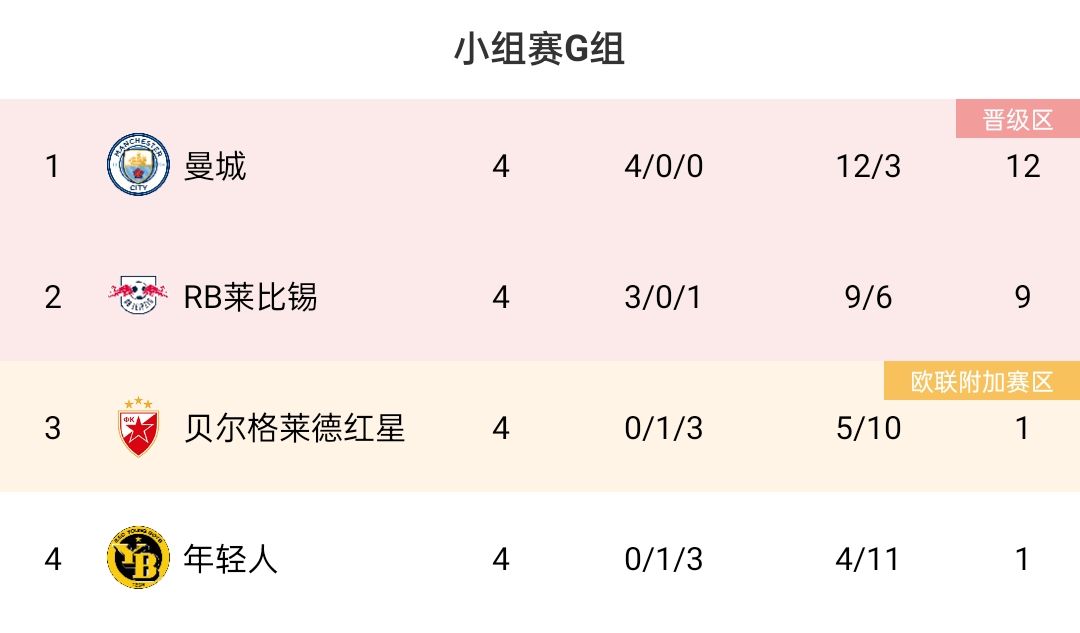 11月9日讯 欧冠小组赛4轮战罢,拜仁、莱比锡提前出线,多特在死亡之组排名第一,欧冠新军柏林联则是4轮仅1分小组垫底提前出局。