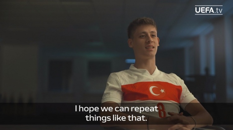 6月18日讯 6月19日00:00,欧洲杯小组赛F组第1轮,土耳其将对阵格鲁吉亚。赛前,欧足联官方采访了19岁中场小将居勒尔。居勒尔表示:“在温布利的欧冠决赛终场哨响