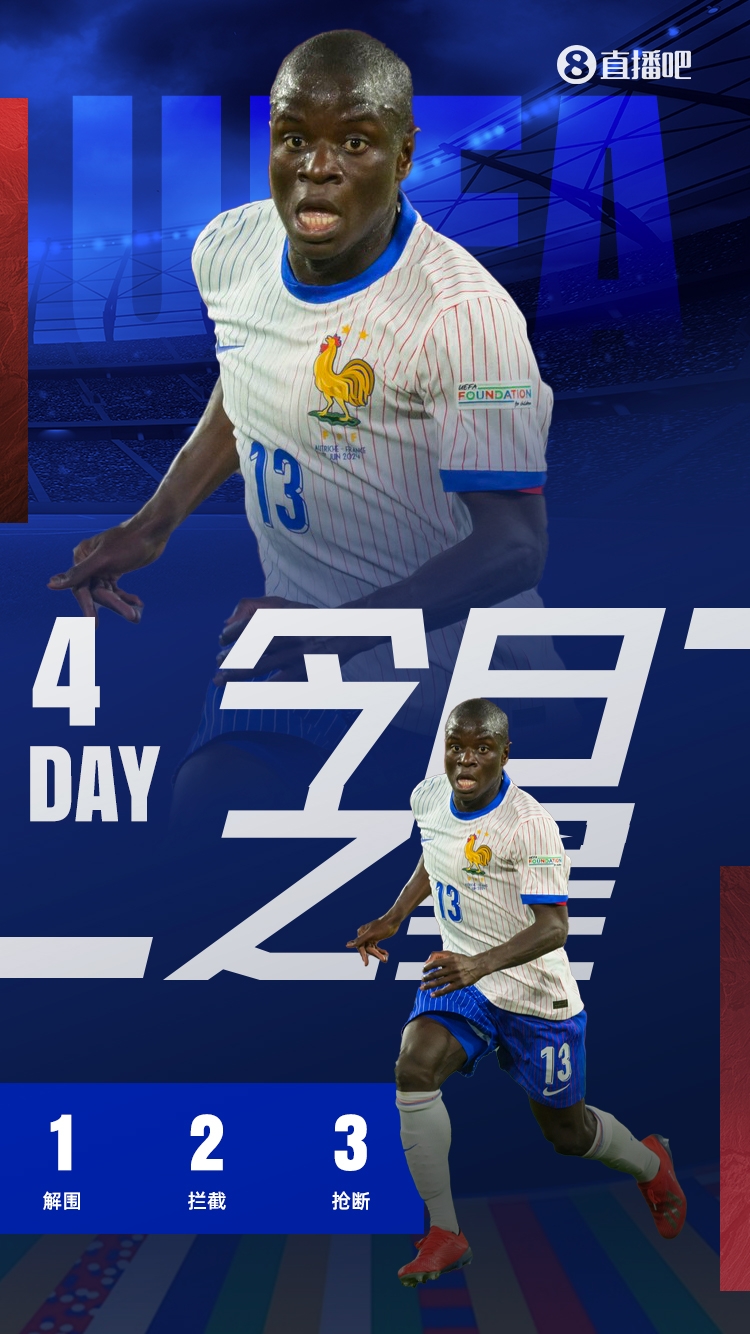 尽管33岁的坎特远离欧洲赛场,在沙特踢球,却依旧是法国阵中最硬之人,无处不在。