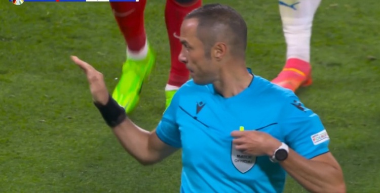 6月19日讯 欧洲杯小组赛F组第1轮,葡萄牙2-1逆转捷克,上半场莱奥假摔染黄。莱奥假摔倒地后,当值主裁果断出示黄牌警告,并做出跳水手势示意莱奥假摔,吃到黄牌的莱