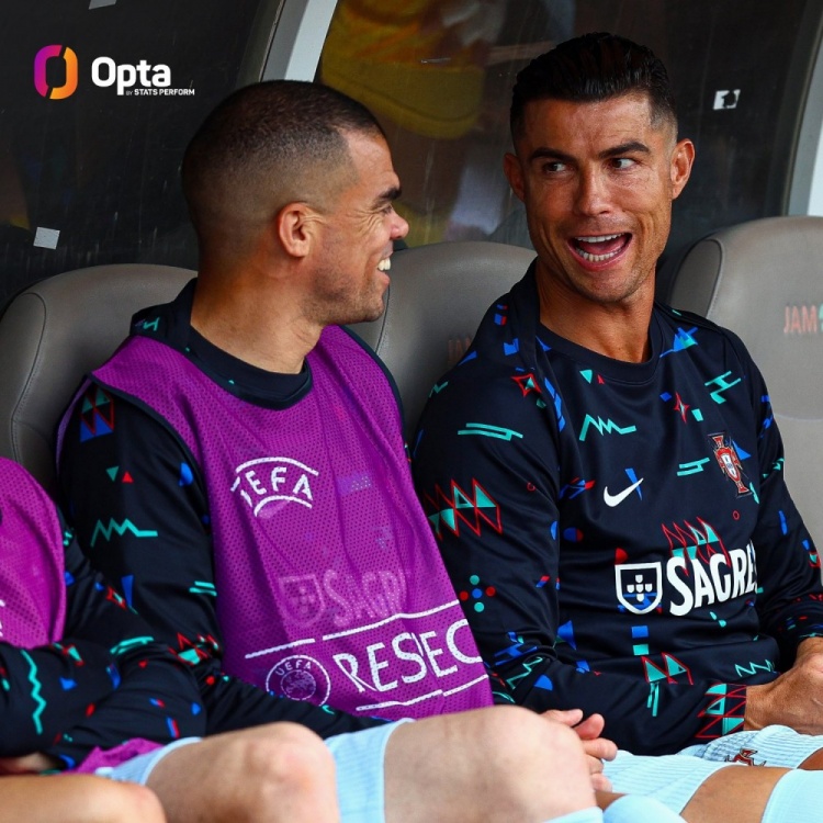 41岁113天的佩佩和39岁134天的C罗联袂出战!他们将同时成为欧洲杯决赛圈历史上出场的最年长的2位外场球员。