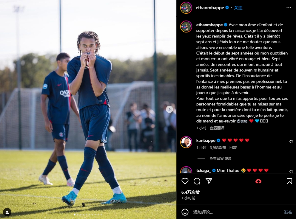 06月19日讯 姆巴佩弟弟伊桑-姆巴佩更新社媒,宣布自己将自由身离开巴黎。
