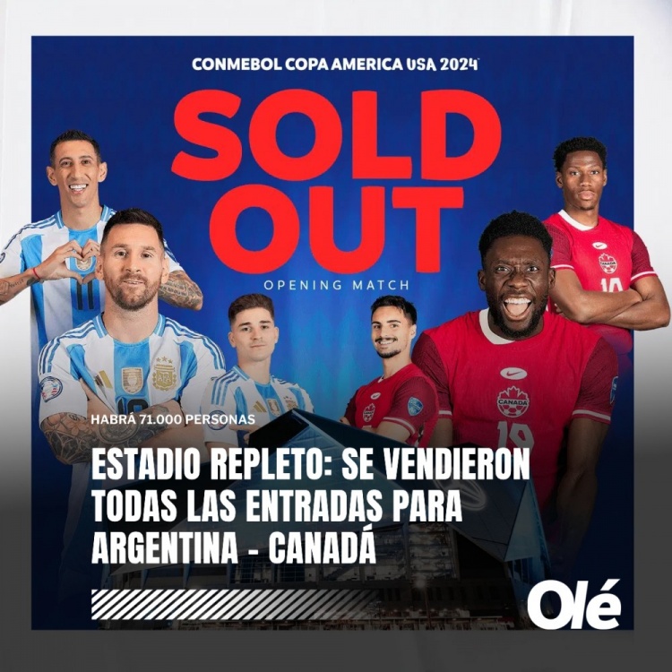 奥莱报:美洲杯揭幕战球票售罄,超7万人现场观战阿根廷vs加拿大