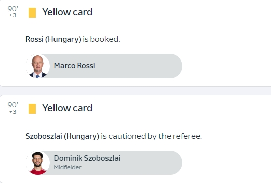 欧足联官网:匈牙利主帅罗西、队长索博斯洛伊最后时刻均染黄