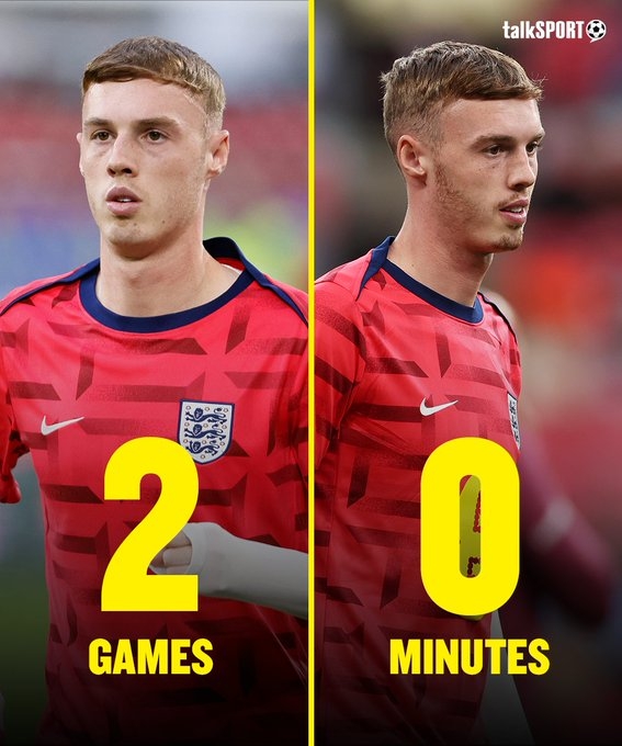 帕尔默在本届欧洲杯的前两场比赛都替补未出场,英格兰两场比赛一共只进了两球,而帕尔默本赛季在俱乐部48场比赛打进27球,送出15次助攻。