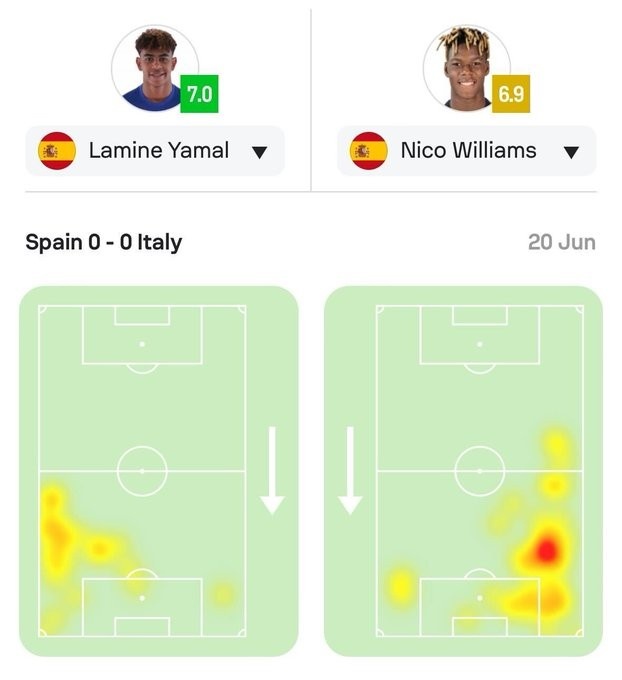 数据统计显示,亚马尔和尼科-威廉姆斯两人在上半场共计9次过人、7次成功,而场上其他球员共7次过人仅3次成功。