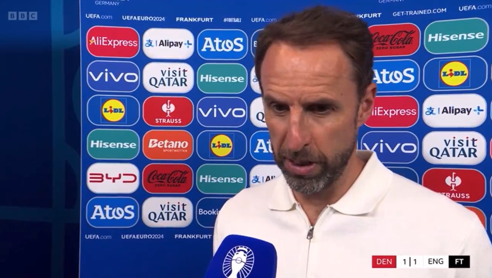06月21日讯 欧洲杯小组赛英格兰1-1丹麦,赛后,英格兰主教练索斯盖特接受采访。