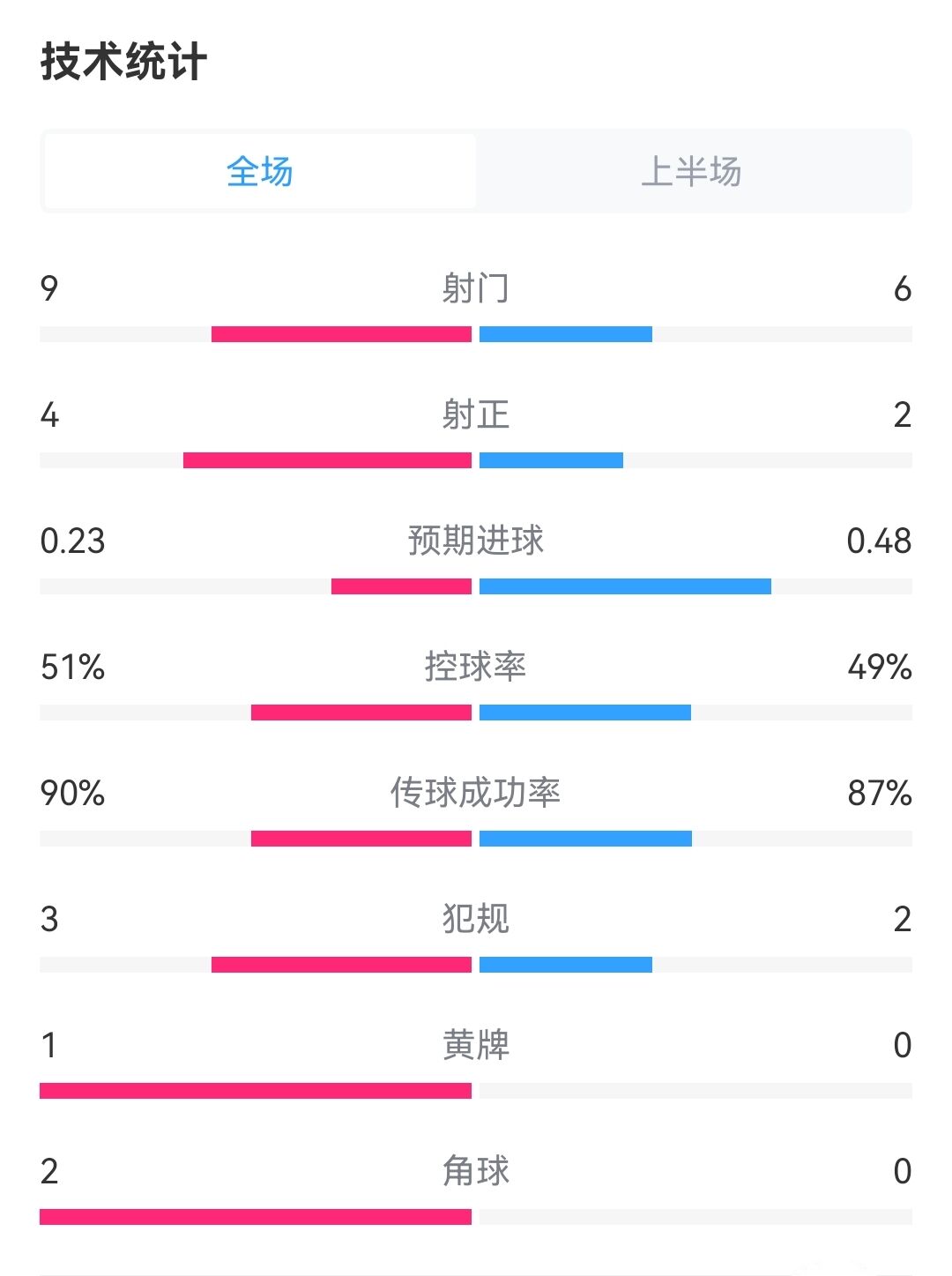 丹麦9射门!丹麦vs英格兰半场数据:射门9-6射正4-2,控球51%-49%