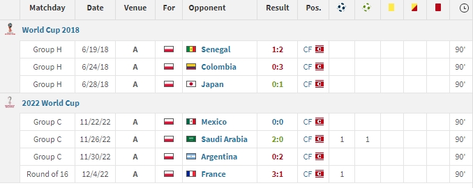 莱万欧洲杯出场12场,打进5球;世界杯7场打进2球。但在他进球的比赛中,波兰只赢了1场比赛,那就是2022年世界杯小组赛,波兰2-0战胜沙特,莱万传射。