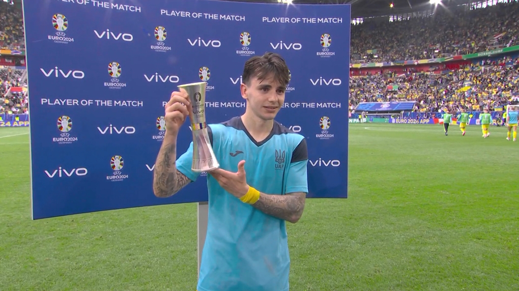 欧洲杯E组第2轮,乌克兰2-1逆转斯洛伐克,本场传射建功的沙帕伦科当选全场最佳球员。