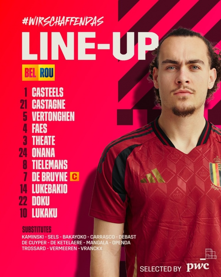 6月23日讯 欧洲杯小组赛E组第2轮,比利时对阵罗马尼亚,维尔通亨先发出战。