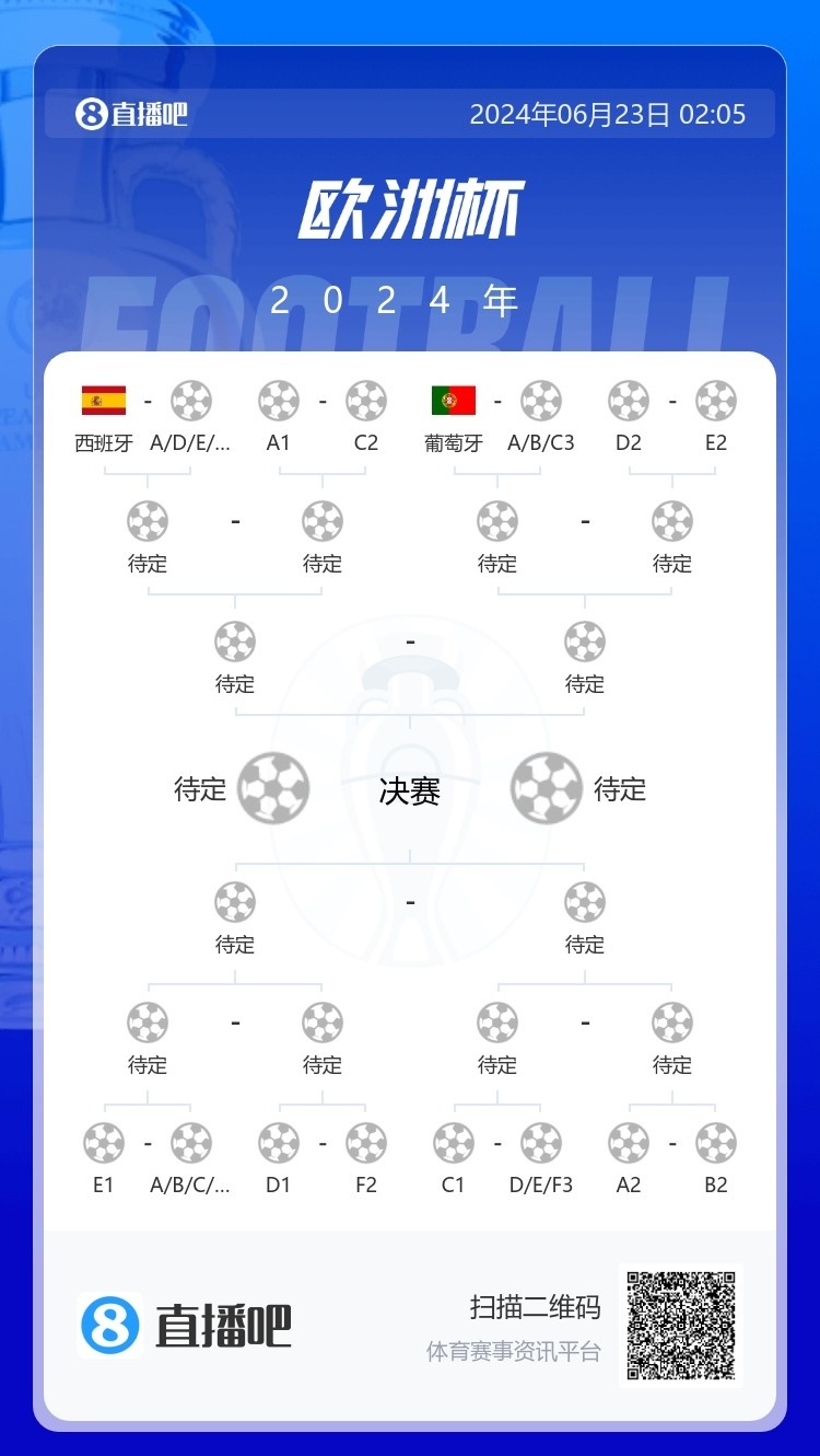 葡萄牙将在欧洲杯1/8决赛对阵A/B/C组第三,若晋级将在1/4决赛对阵D/E组第二。也就是说,如果葡萄牙能进入到欧洲杯半决赛,他们在此之前都不会遭遇其他组的小组第一。