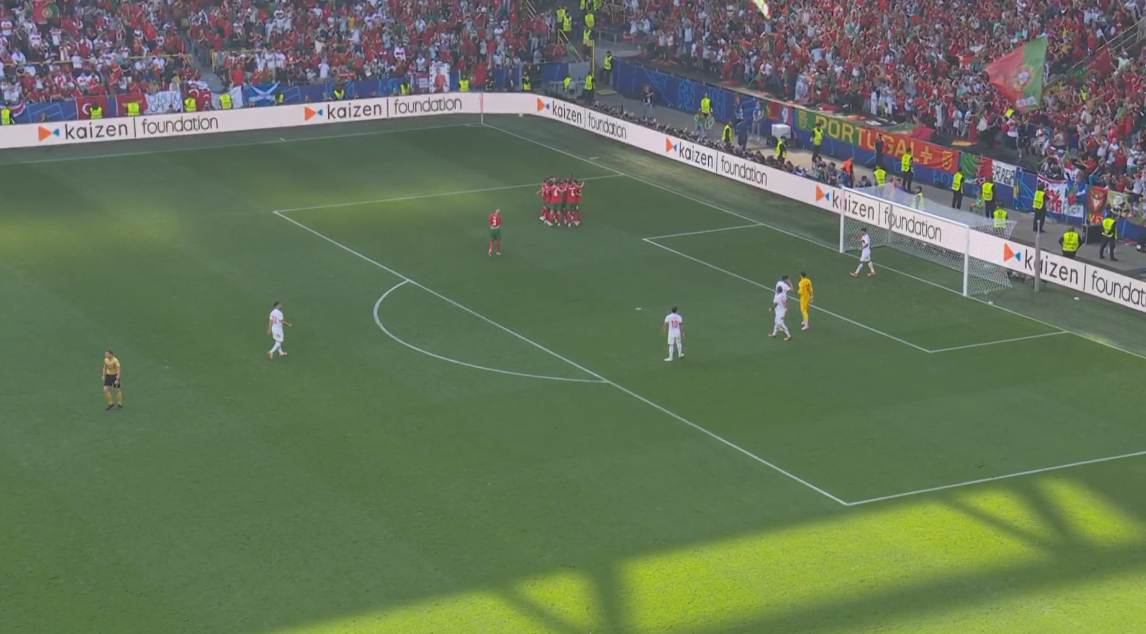 06月23日讯 葡萄牙vs土耳其第28分钟,土耳其后防离谱失误,自摆乌龙!皮球直接过线,主裁判直接指向中圈。