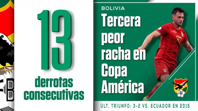 据ESPN统计,此役过后,玻利维亚美洲杯比赛连续13场不胜,这是美洲杯历史第三长的不胜纪录。