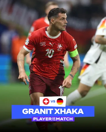 06月24日讯 欧洲杯小组赛A组第3轮,瑞士1-1战平德国,扎卡赛后被评为全场最佳。