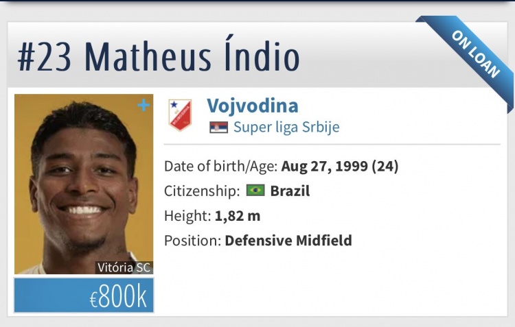 6月25日讯 据记者孙飞报道,中超新军青岛西海岸的新外援将于今天16时15分飞抵青岛胶东国际机场。种种迹象表明,这名新外援是现年24岁的巴西中场马特乌斯-因迪奥。
