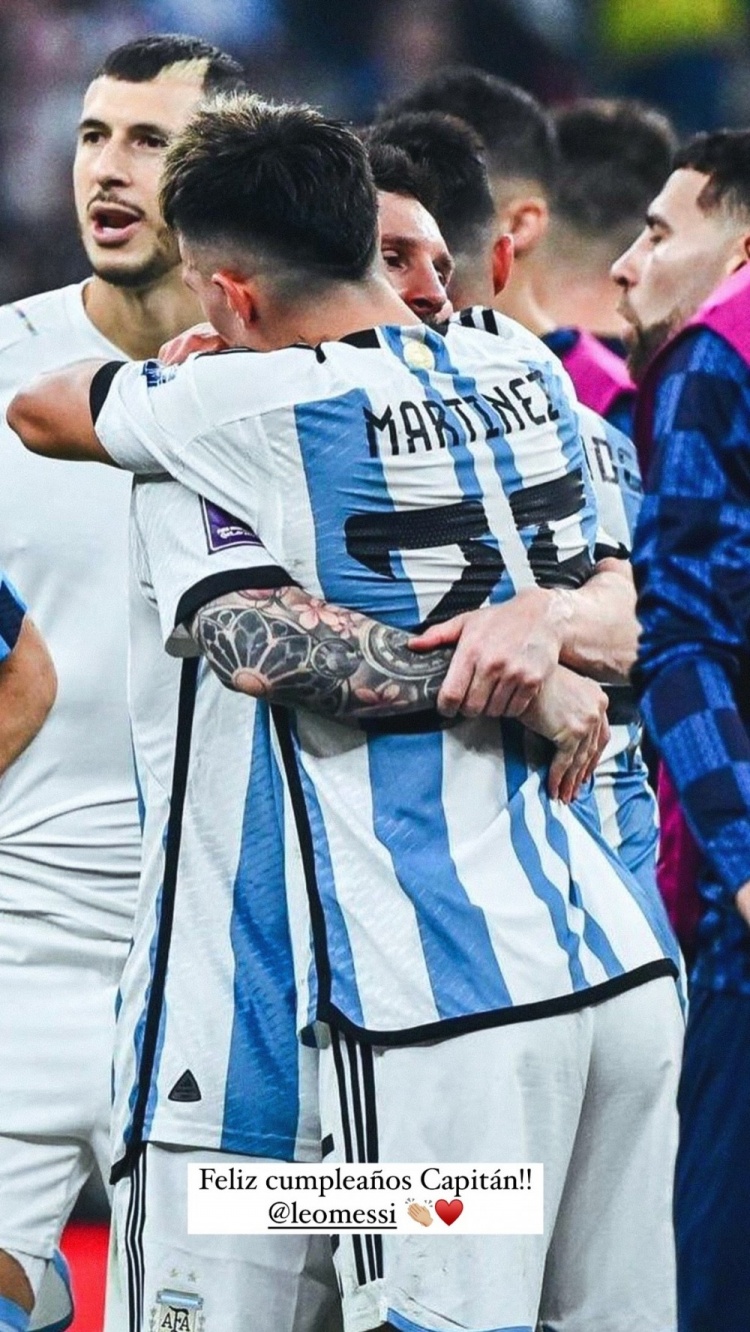 利桑德罗在社交媒体上晒出自己与梅西拥抱的照片,并配文:“生日快乐,队长!”