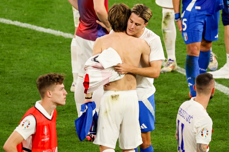 赛后,意大利中场法乔利与莫德里奇拥抱致意,并交换球衣。
