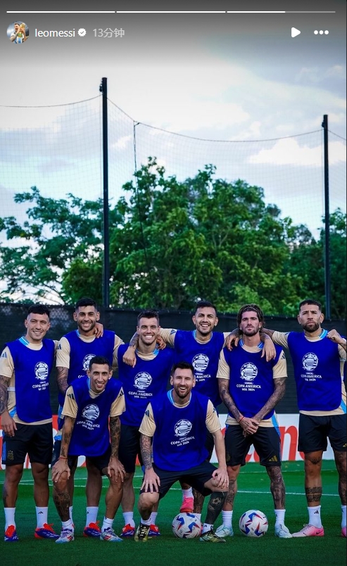 梅西社媒晒照,阿根廷训练中的胜利小分队