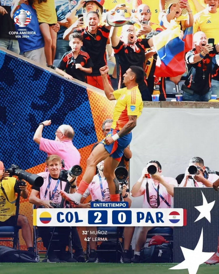 6月25日讯 北京时间6月25日6点,美洲杯小组赛D组第一轮,哥伦比亚对阵巴拉圭。上半场,J罗先后助攻穆尼奥斯和莱尔马破门,库卢米伤退。上半场比赛结束,哥伦比亚2-0巴拉圭。