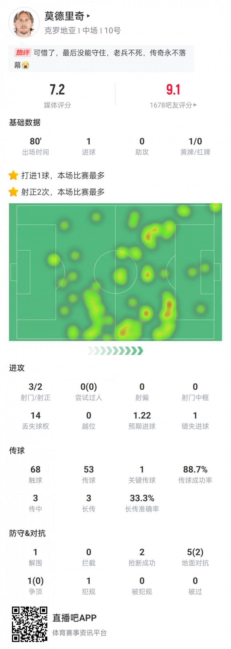 相关阅读:老兵不死!莫德里奇全场数据:出战79分钟,1次失点+1粒进球