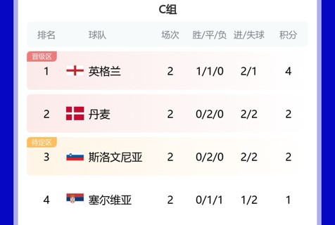 末轮英格兰vs斯洛文尼亚,丹麦vs塞尔维亚