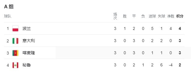 据统计,这是大赛第二次出现小组赛6场5平,首次是1982年世界杯A组,波兰、意大利、喀麦隆、秘鲁同组。